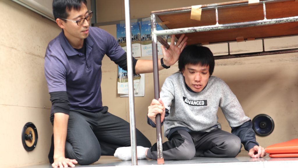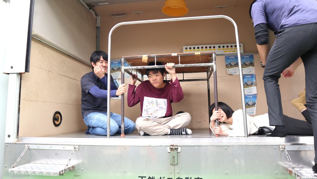 起震車の揺れや動きが写真では伝わりづらいですが・・・震度5までの揺れを体験しました❗